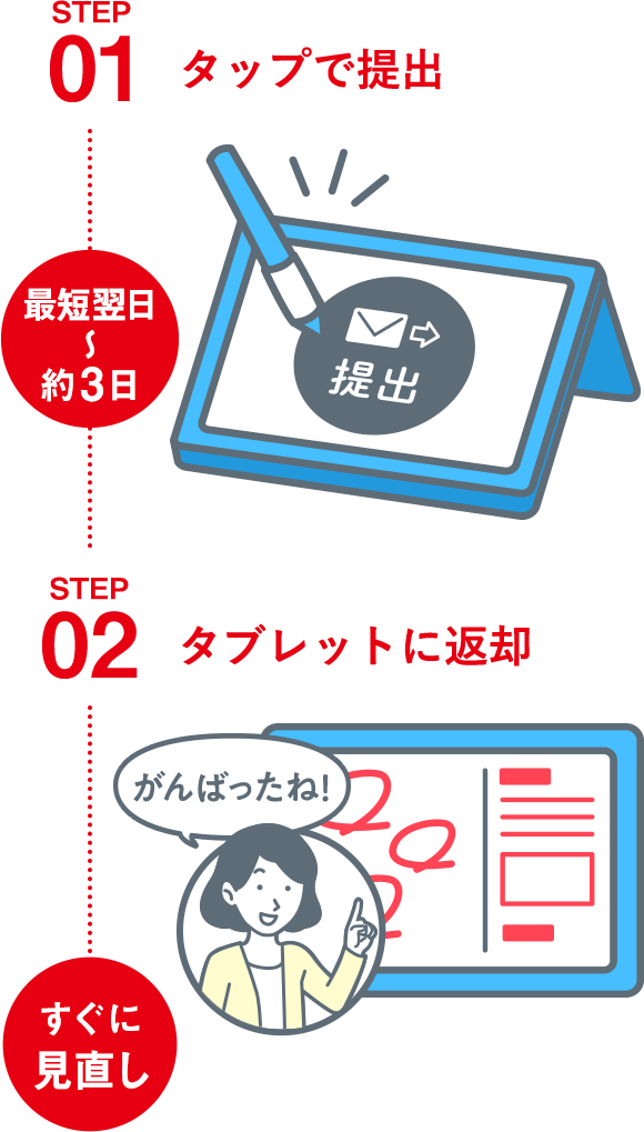 <チャレンジタッチ>を選択いただいたかたで、以前にご受講されたことがない場合は、学習専用タブレットをお届けします。以前にキャンペーンをご利用され、タブレットを返却されたかたには再度タブレットをお届けします。