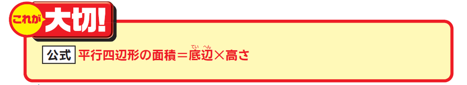 まずは、平行四辺形の底辺や高さなどの言葉の定義を理解しましょう。
