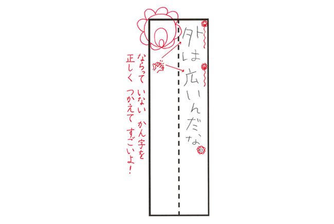 答えが合っているかどうかだけでなく、どう考えたか、考えようとしていたか。例えば、自分の考えを伝える問題で、文章から考えたことを自分の言葉で書けるのはすごいこと。たとえ短い答えでも、お子さまが花まるを見て、伝わったと思える経験を重ねていくことで、昨日の自分よりも少し書けるようになっていくんじゃないかと思っています。