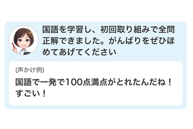 がんばったお子さまへの声かけ例で、お子さまのやる気を上げるサポートをします。