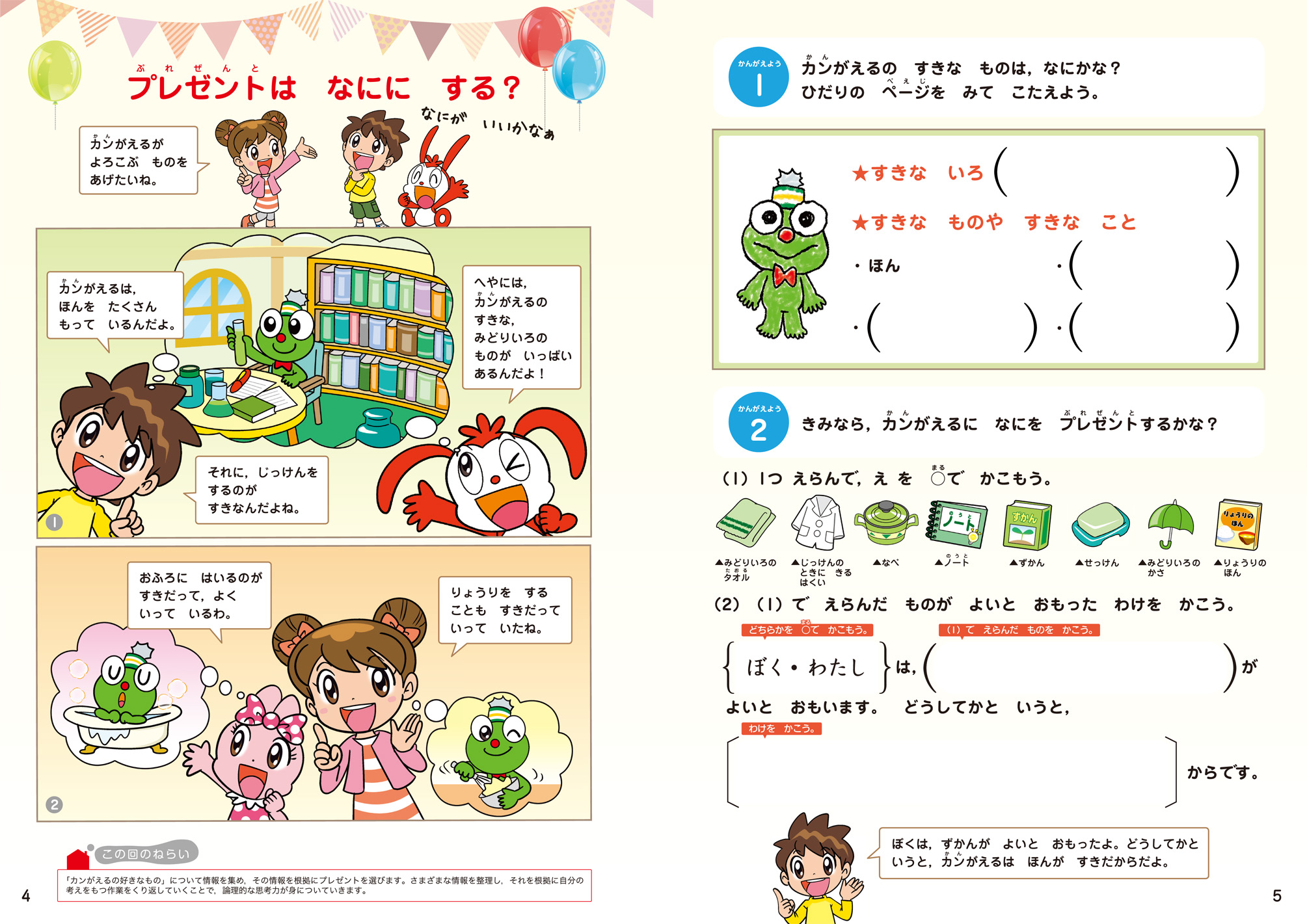 低学年にも考えやすいフレームワークを使用して続けて取り組むことで、少しずつ考え方を身につけていきます。