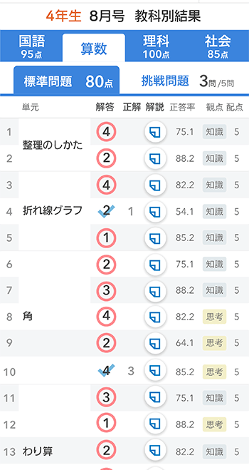 ※紙講座「チャレンジ」をご受講の場合は、紙で受検いただき、郵送かwebでの提出により結果をご確認いただけます。