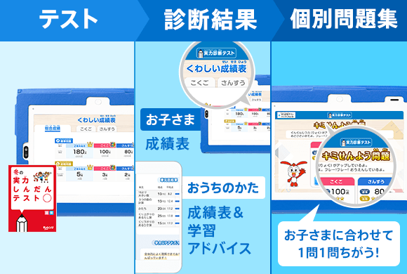 全国規模の実力診断テストで到達度を確認。結果に応じた個別問題集で苦手を解消できます。