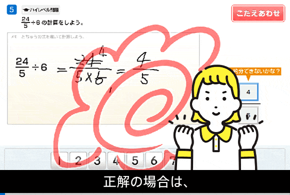 まちがえたら、AIがその場で原因を判定。お子さまに最適な解説と類題を出題。