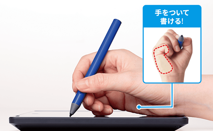 紙と同じように画面に手をついて書ける「パームリジェクション機能」で書き心地を損ないません。