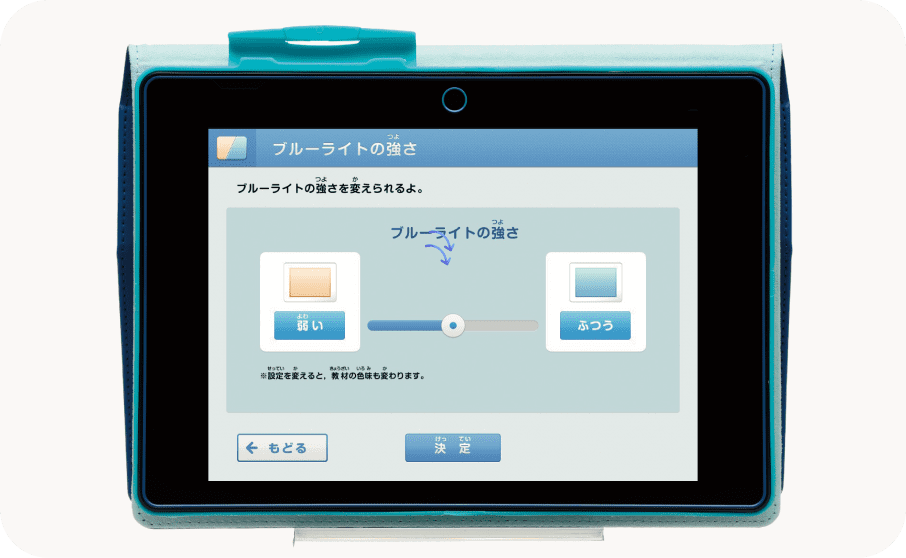 ブルーライトカットの強さを調整できて、お子さまの目を守ります。