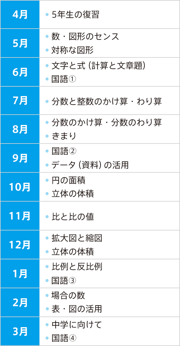 • 受講中止のご連絡をいただかない限り、6年生終了まで続けてお届けいたします。