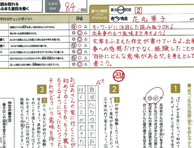 「赤ペン先生の問題」は毎回テストみたいで、まちがえたところに「どう直したらいいか」「こうしたらよいよ」というアドバイスが勉強になりました。最初は記述問題にニガテ意識を持っていましたが、だんだん自分の考えを整理して書けるようになり、受検本番もいつものリビングと変わりない安心感で集中して解くことができました。