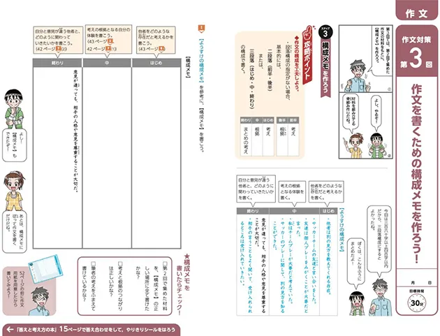適性検査で出題されるのは、400~800字程度の作文がほとんど。3つのパートに分けて書くのが基本となる”作文の型”。その構成を作る練習を重ねて、どんなテーマでも自分の意見が表現できる作文力が身につくワークを毎月お届けします。