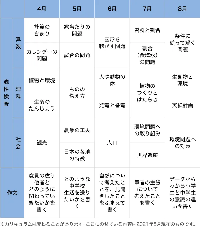 - 映像授業は毎月テキスト5本・ワーク3~5本 (1本あたり約5~10分)、受験情報系動画3本(6年生のみ。1本あたり約5~10分)です。
