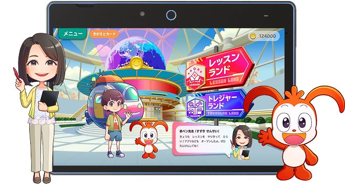ヒントや促しをくれるキャラクターたちと一緒に、実際に書き込んだり、動かしたりしながら、楽しく内容を理解できます。